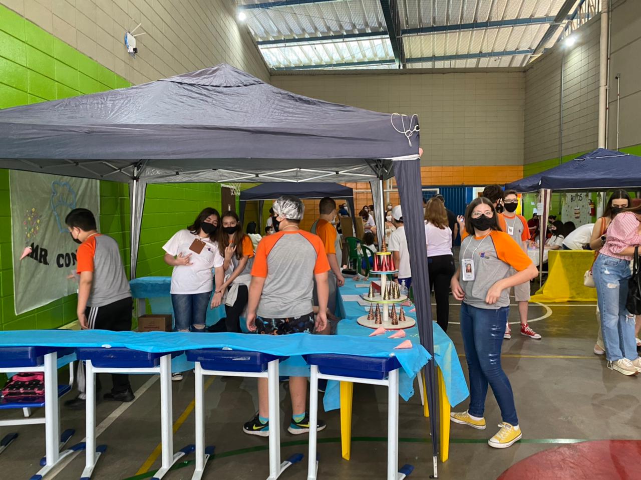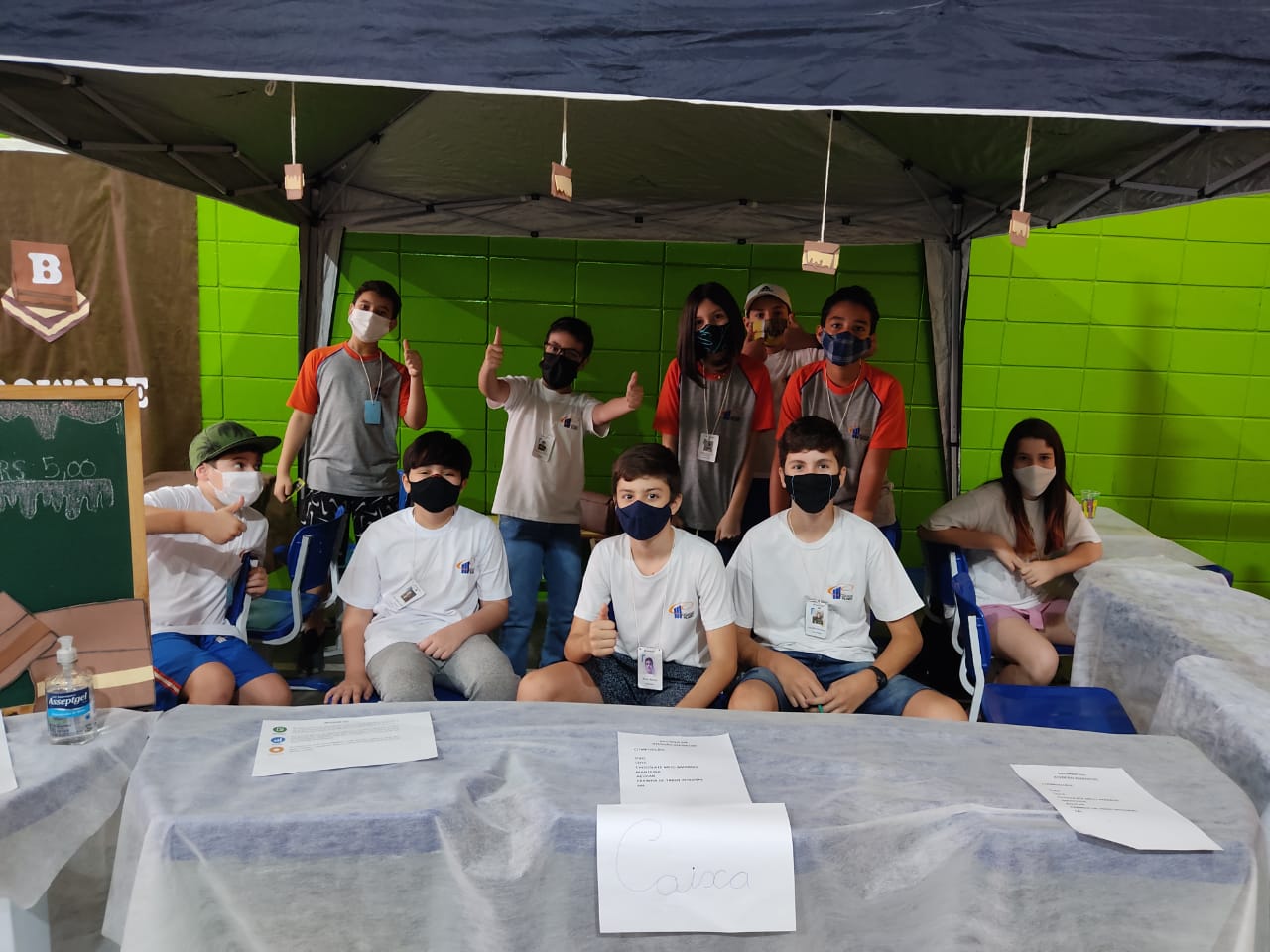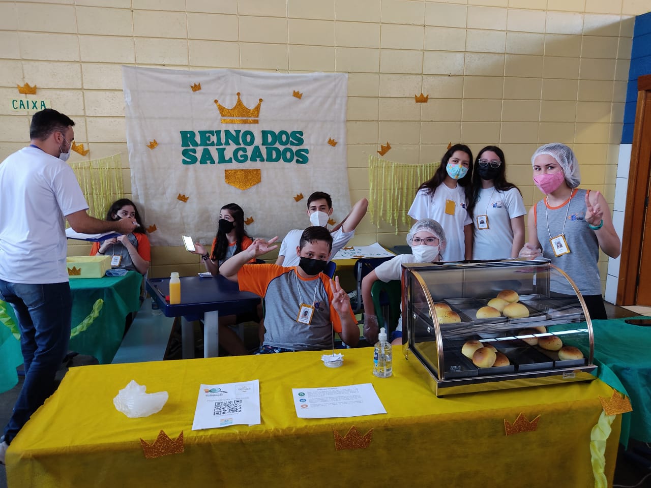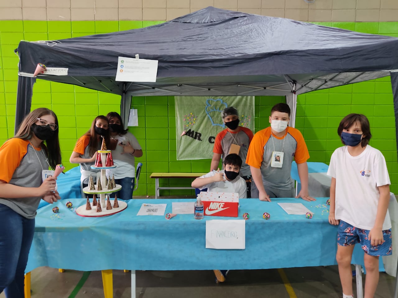 Neste dia, aconteceu também a Feira de Empreendedorismo das turmas de 6º ao 9º ano. A partir dos projetos elaborados nas aulas de Educação Financeira e Empreendedorismo, cada classe inaugurou sua “empresa” colocando em prática os estudos de divulgação e marketing, planejamento financeiro, preparo e venda de produtos diversificados. A Feira foi um sucesso!